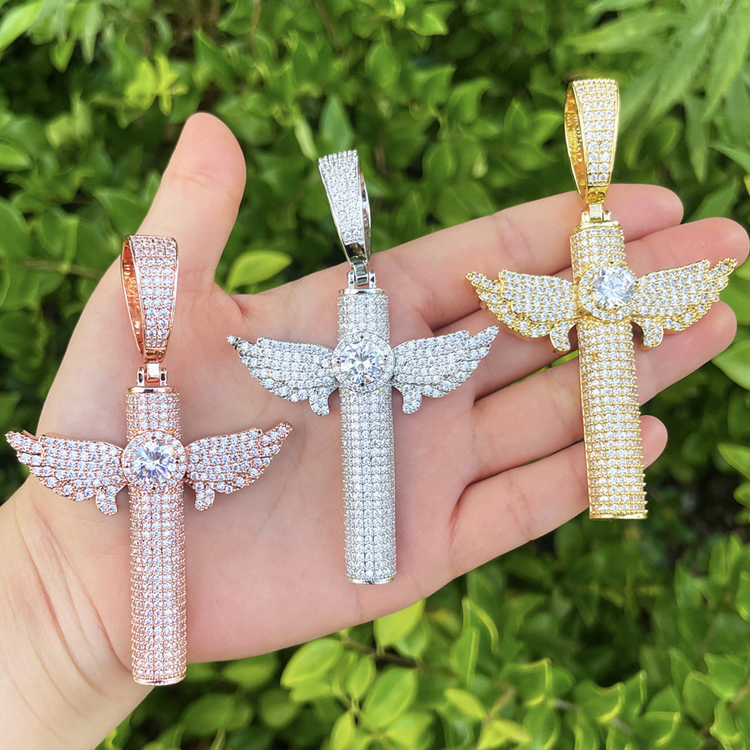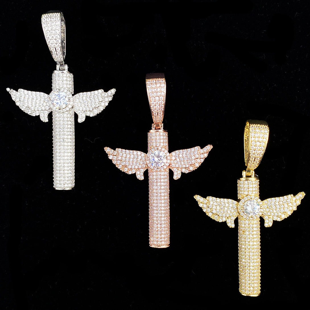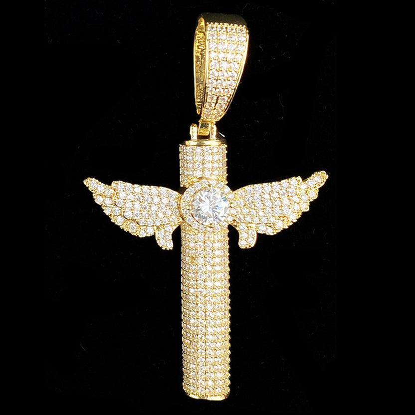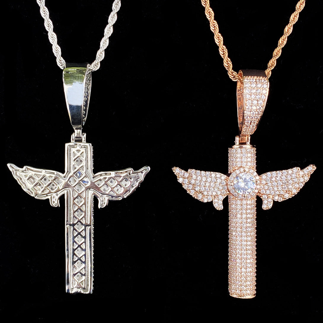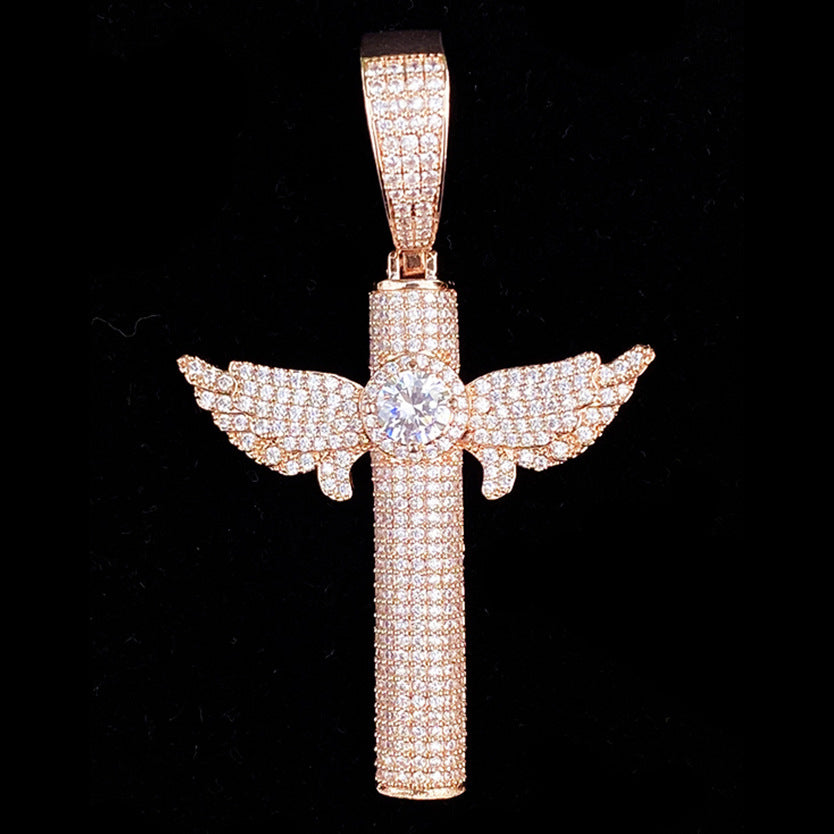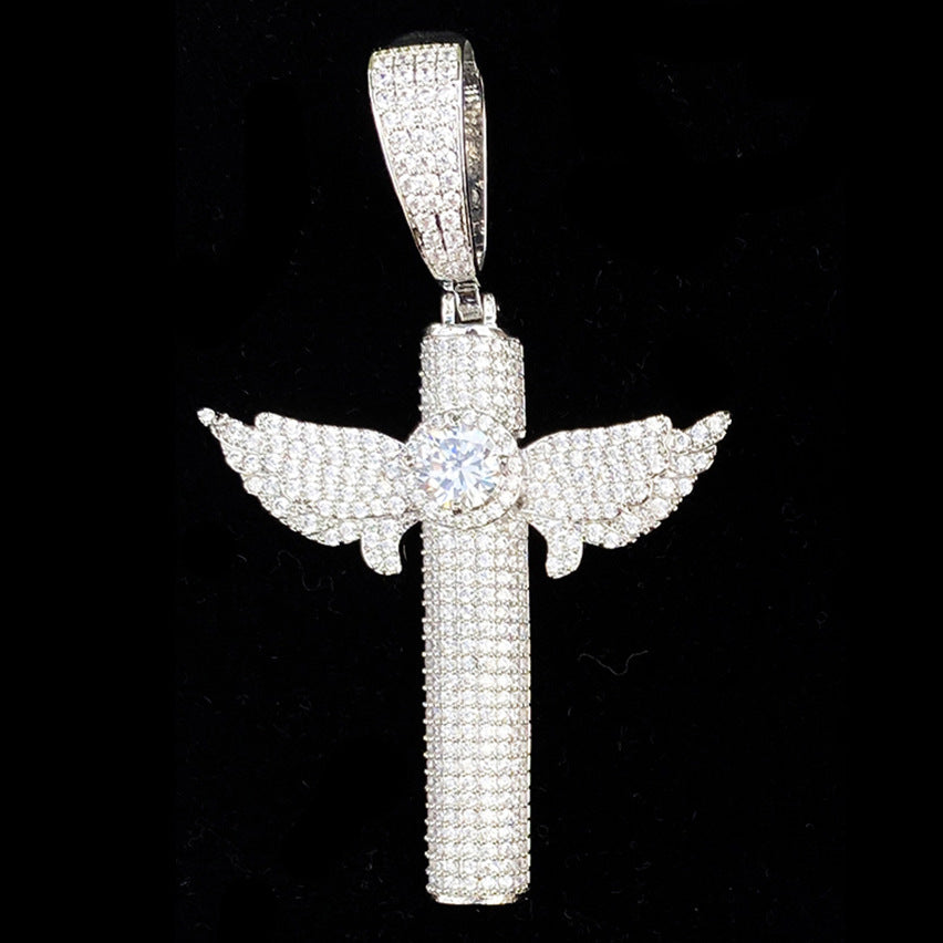 Where faith takes flight. The Moissanite Angel Wing Cross Pendant unites divine protection with celestial beauty, featuring softly detailed wings embracing a classic cross—each element glistening with meticulously set moissanite stones. A symbol of hope, guidance, and grace, this pendant carries a whisper of heaven’s light, reminding the wearer that they are never alone. Whether gifted as a token of love or worn as personal inspiration, it’s a delicate yet powerful statement of belief that shines from above.