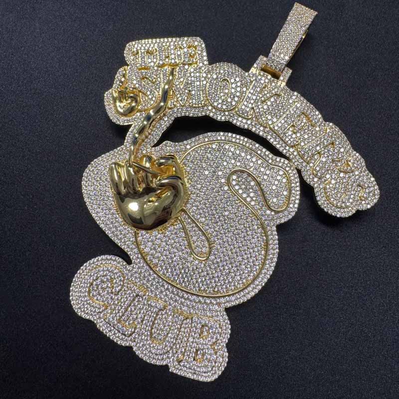The Moissanite Smokers Club Hip-Hop Pendant captures a bold and rebellious spirit with its playful, statement-making design. Its intricate detailing and shimmering brilliance reflect a lifestyle of confidence and individuality, making it the perfect centerpiece for those who want to stand out.