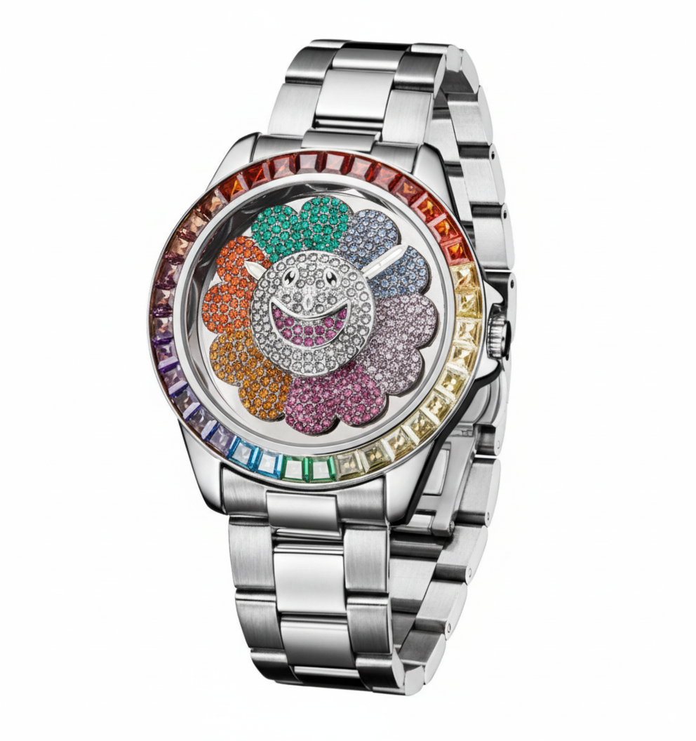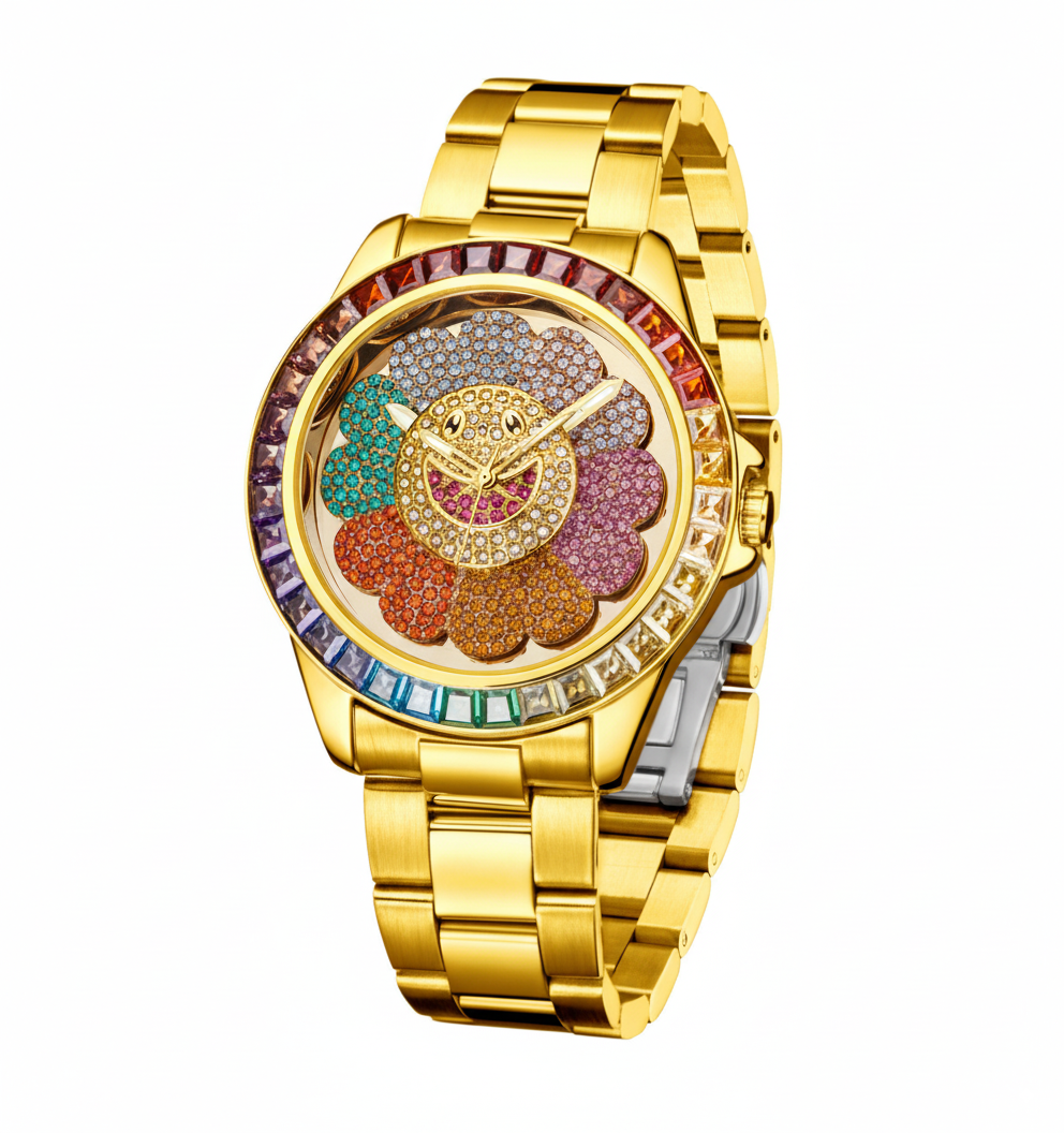 Yo, check the ultimate flex. This Limited Edition Flower Baguette Watch is dripping in frozen sunshine. Each petal is set with flawless baguette stones, blazing with its own rhythm. A rare piece for the real ones who rule the game. Pure elegance, unmatched prestige. Own the spotlight.