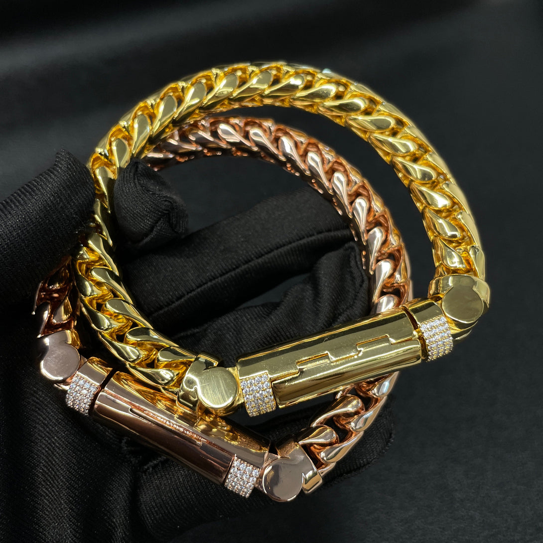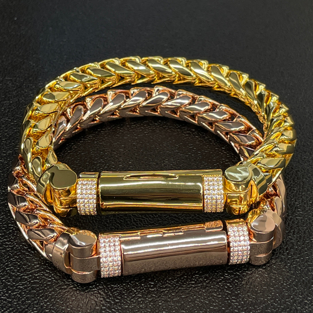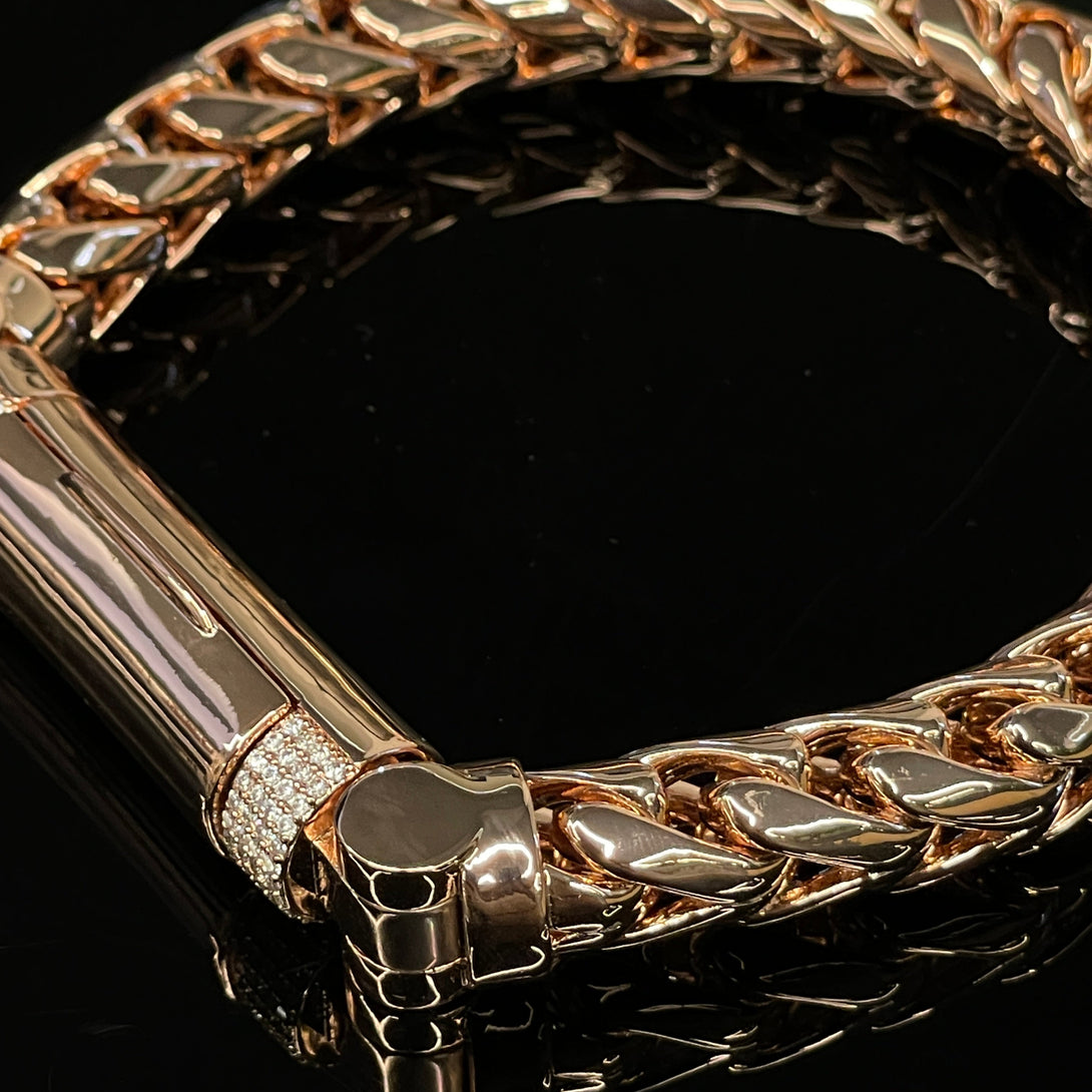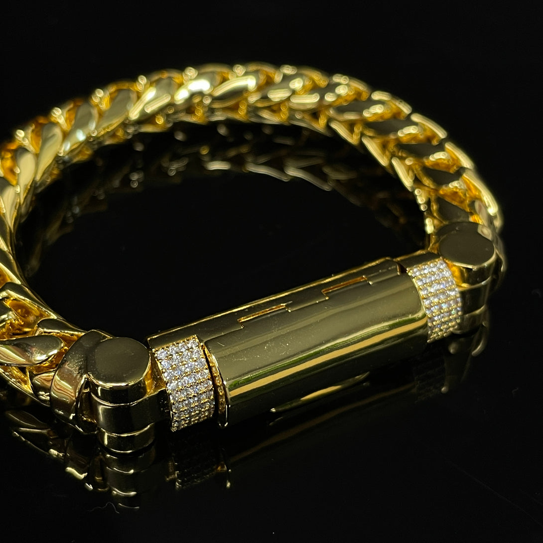 Elevate your style with the bold elegance of our 10mm Franco Custom Lock Moissanite Bracelet. Featuring a sleek Franco link design and a distinctive custom lock closure, this bracelet brings a perfect blend of modern sophistication and timeless edge to any look.