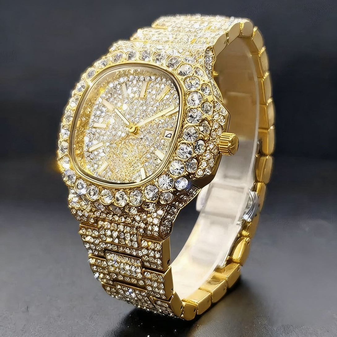 The Aquilis Iced Out Watch soars above the rest as a symbol of elevated luxury and precision. Expertly set with brilliant diamonds that capture and reflect light from every angle, its design radiates sophistication and power. Named for the eagle—a timeless emblem of vision and dominance—this timepiece transforms the wrist into a statement of unparalleled success. For those destined to lead, it offers a constant sparkle of prestige and relentless refinement.