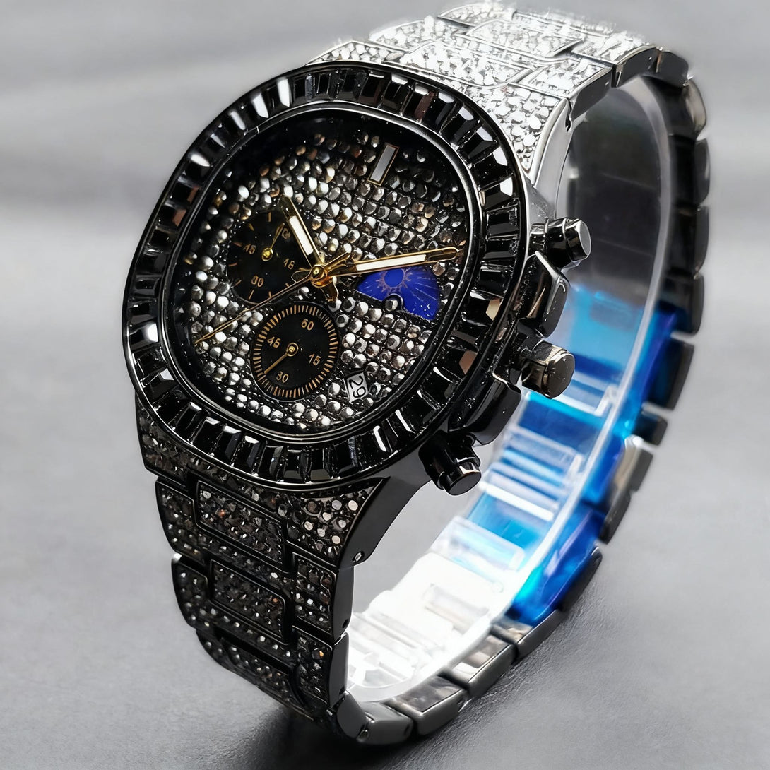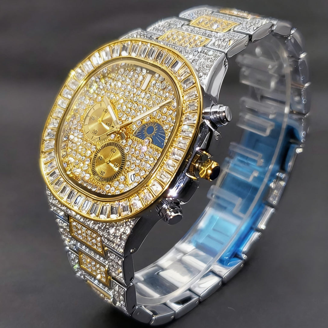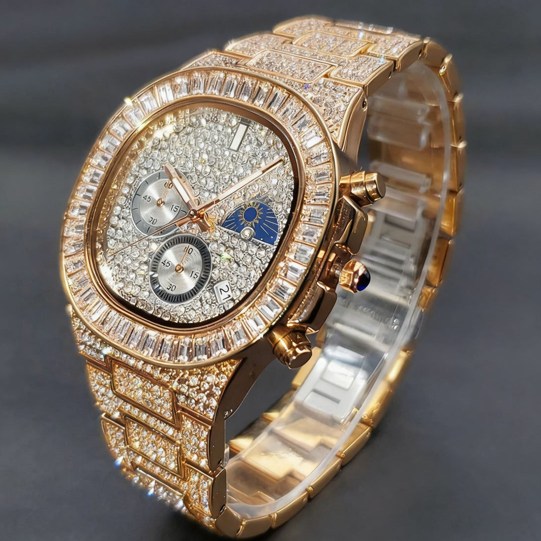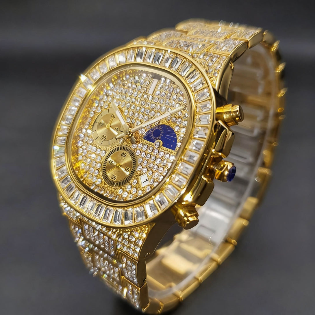 Carry the world with elegance. The Atlas Baguette Watch embodies strength, structure, and sublime sophistication. Adorned with precisely set baguette-cut diamonds, its clean lines and geometric brilliance echo the enduring spirit of a global pioneer. Designed for those who bear responsibility with grace and command respect with subtlety, this timepiece merges architectural diamond work with timeless refinement. Not just a watch—it’s a symbol of unwavering presence and elevated taste.