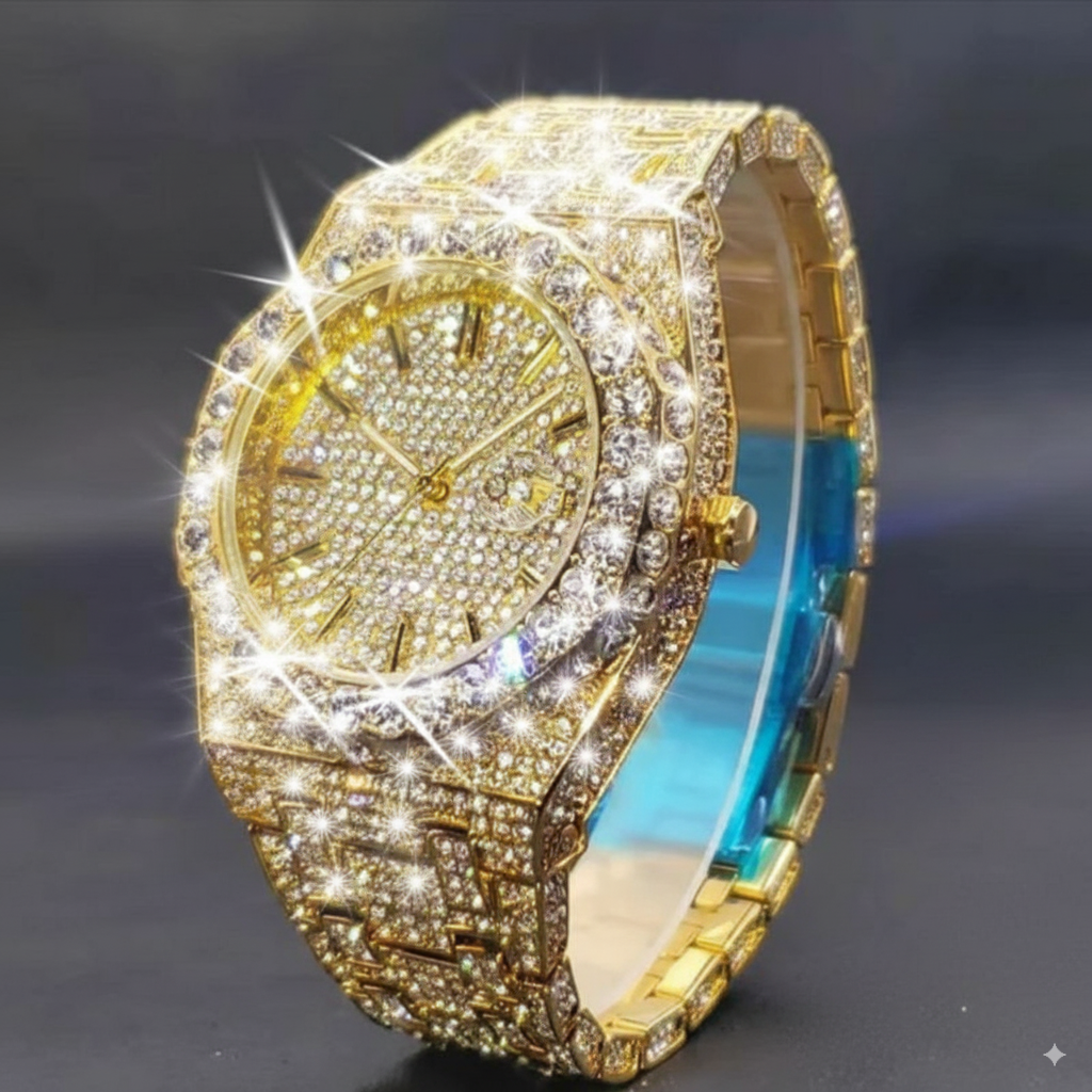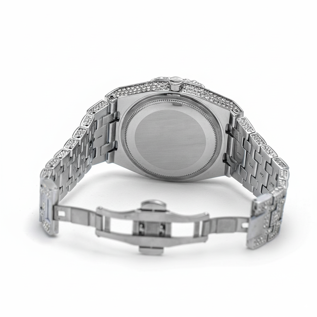 The Royale VVS Iced Out Watch is the definitive symbol of audacious luxury and modern prestige. Expertly crafted with flawless VVS diamonds, its surface captures and reflects light with breathtaking intensity, making every glance a moment of dazzling spectacle. For those who demand nothing but the extraordinary, this watch transcends mere timekeeping to offer a continuous display of supreme confidence and opulent style.