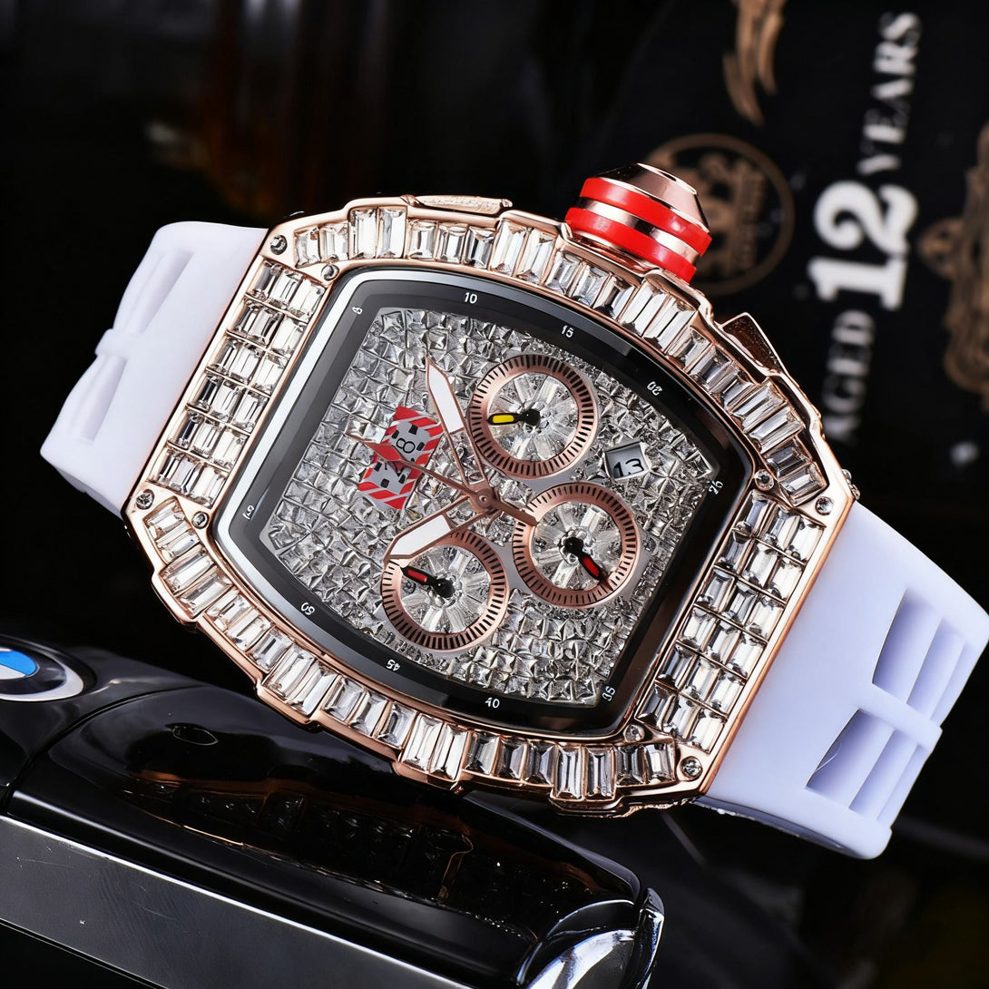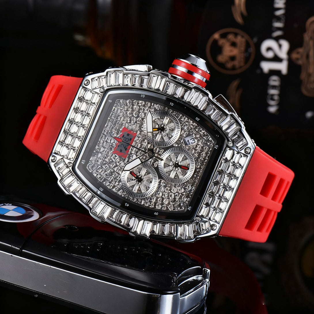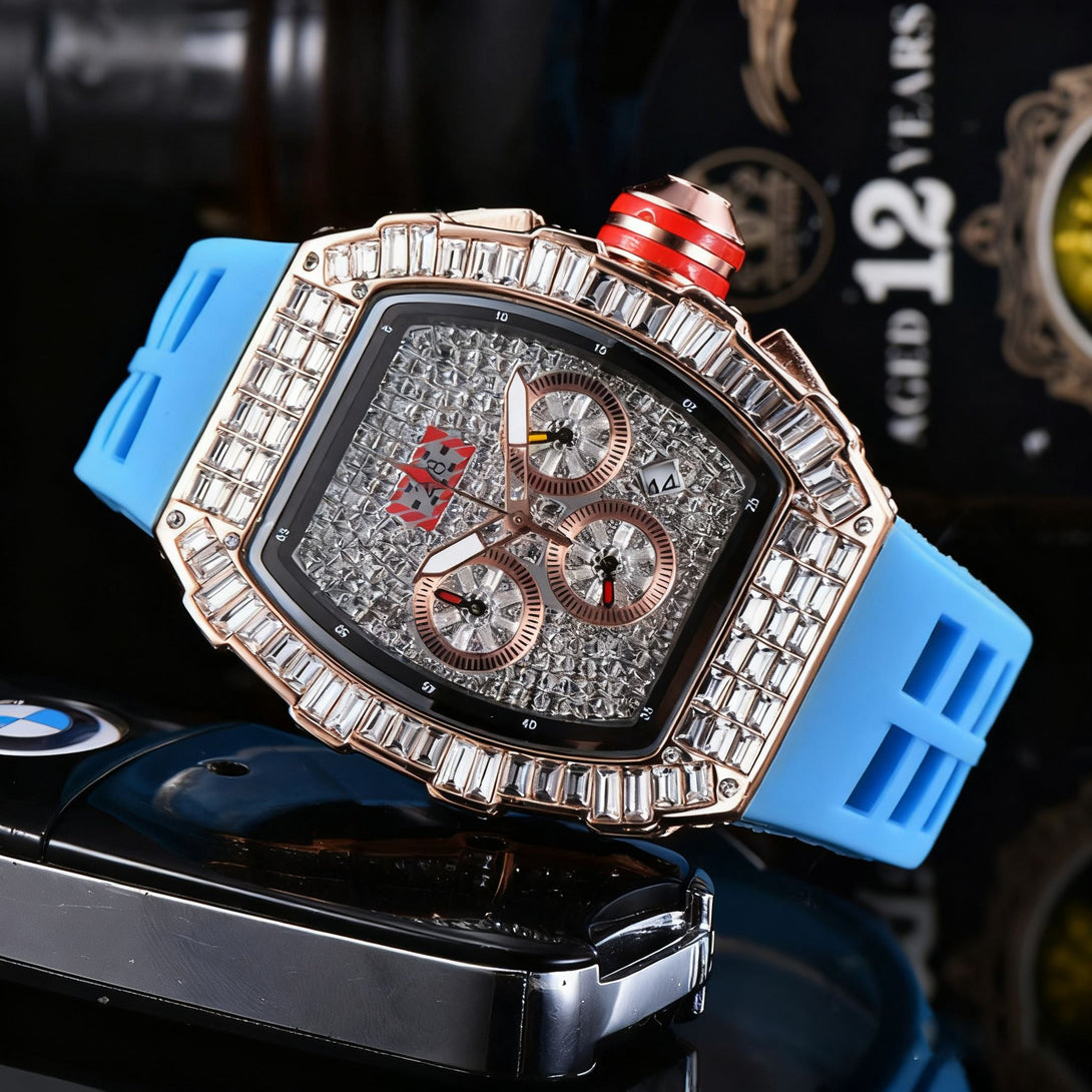 Rise to the peak of luxury with the Coral Apex Ice Watch—where oceanic elegance meets mountain-high prestige. Inspired by the vibrant beauty of coral and the untouched brilliance of glacial ice, this timepiece features a mesmerizing fusion of rich color and diamond-set frost. Its bold, sculpted design captures light like sunlit reefs meeting Arctic light, creating a striking visual contrast that commands attention. For those who conquer both depth and height, this watch is more than an accessory—it’s a testament to refined exploration and polarizing glamour.