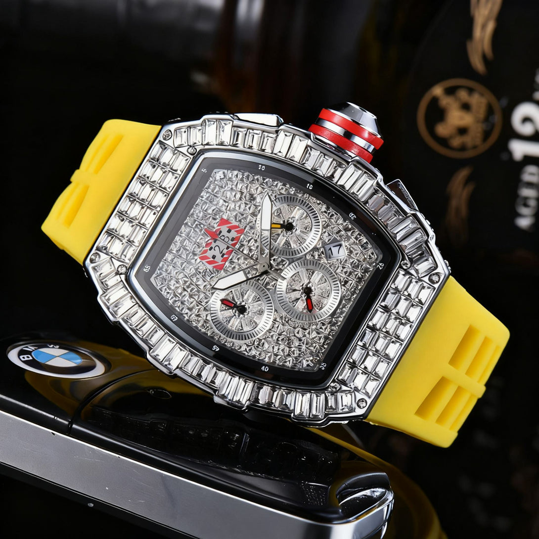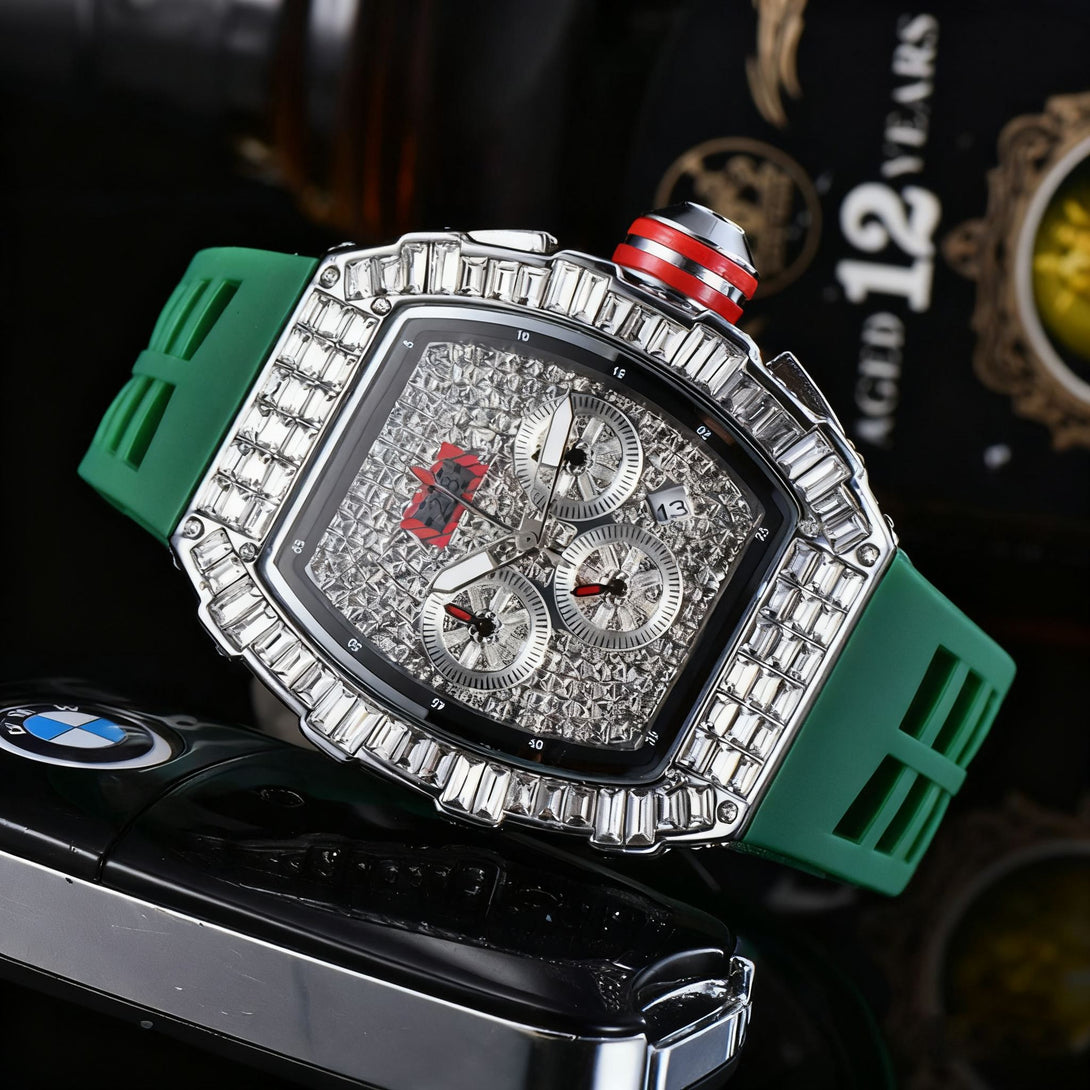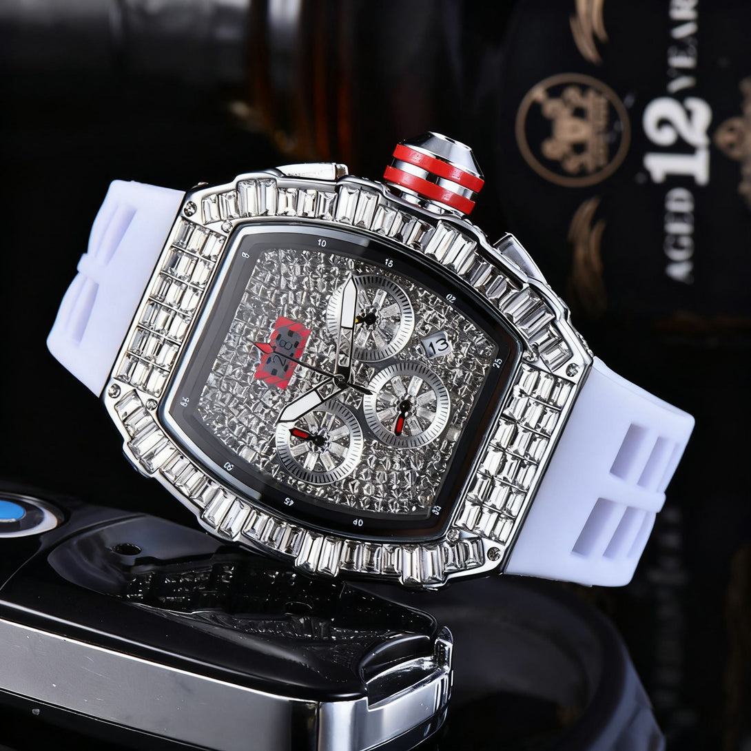 Rise to the peak of luxury with the Coral Apex Ice Watch—where oceanic elegance meets mountain-high prestige. Inspired by the vibrant beauty of coral and the untouched brilliance of glacial ice, this timepiece features a mesmerizing fusion of rich color and diamond-set frost. Its bold, sculpted design captures light like sunlit reefs meeting Arctic light, creating a striking visual contrast that commands attention. For those who conquer both depth and height, this watch is more than an accessory—it’s a testament to refined exploration and polarizing glamour.
