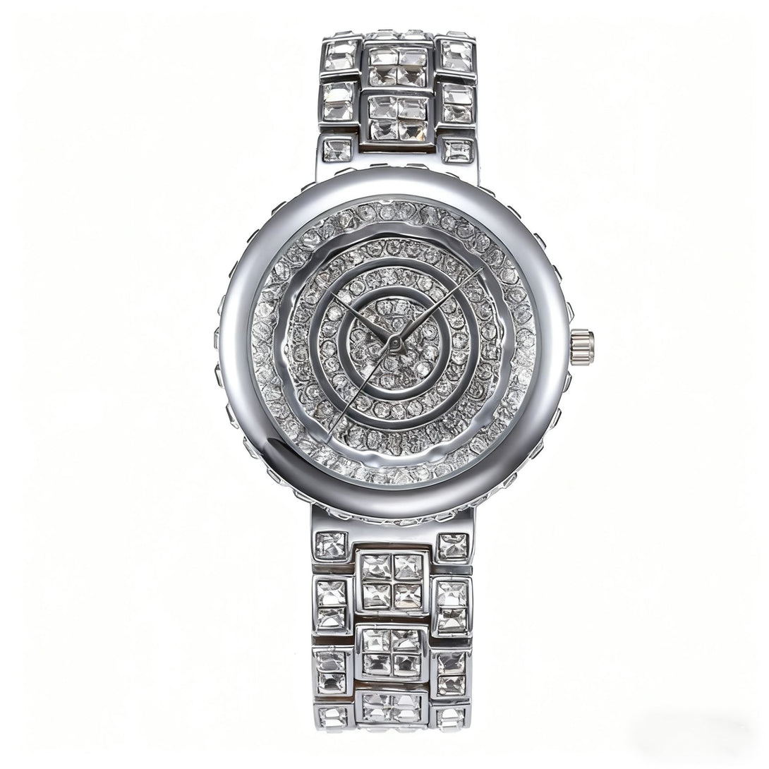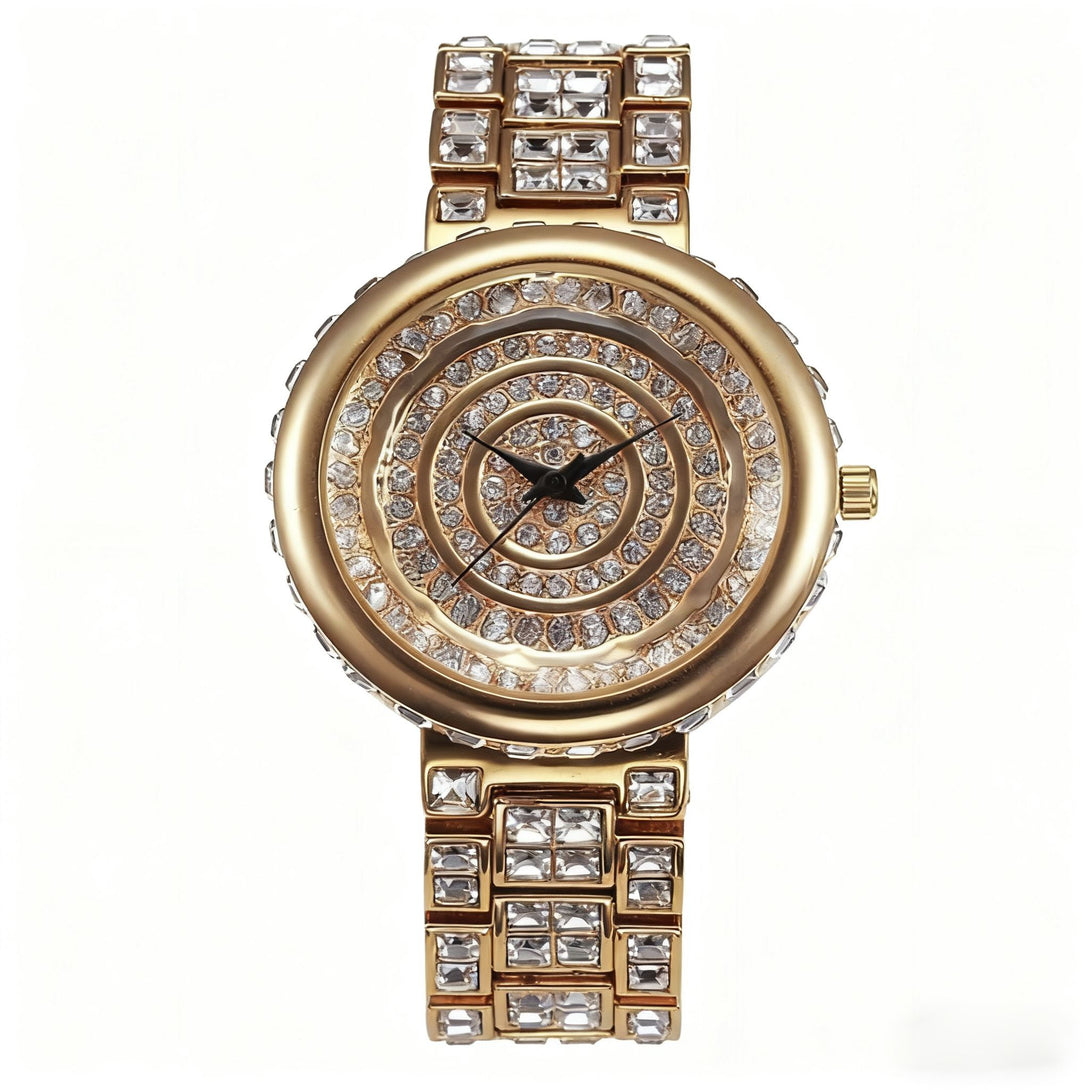 Command elegance. Rule with radiance. The Empress Iced Out Watch is a sovereign statement of power, grace, and diamond-set grandeur. Adorned with meticulously set stones that blaze with imperial brilliance, every curve and facet reflects unwavering authority and refined taste. Designed for those who wear their crown with silent strength and visible splendor, this timepiece transforms the wrist into a throne—where time bows to beauty, and luxury reigns supreme.