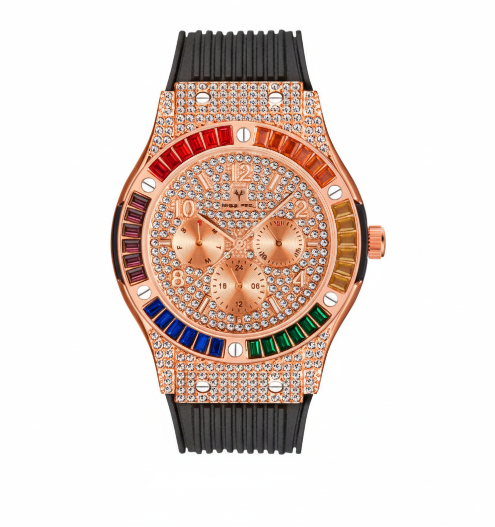Parisian flair meets hip-hop ice. The Kenzo drips with signature luxury, blending iconic style with a blizzard of flawless diamonds. For the fashion-forward elite who command streets and runways alike. Bold, branded, and brilliantly iced out. This isn’t just a watch—it’s a statement. Own the culture.