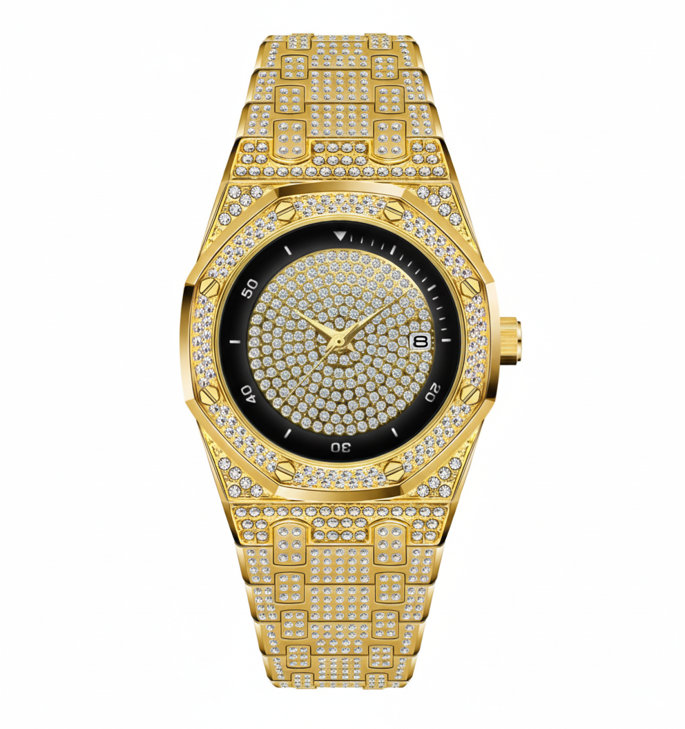Everything you touch turns to ice. The Midas drips in golden luxury, layered with a king's ransom of pave diamonds. This is the ultimate symbol of wealth and power, crafted for rulers who turn moments into legacies. Pure opulence, zero apologies. For those who don't chase the crown—they define it. Own the touch.
