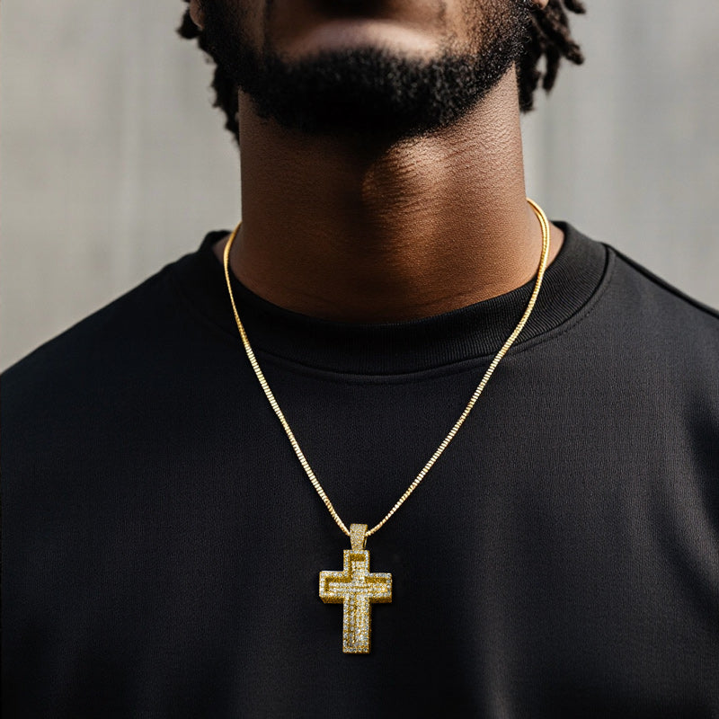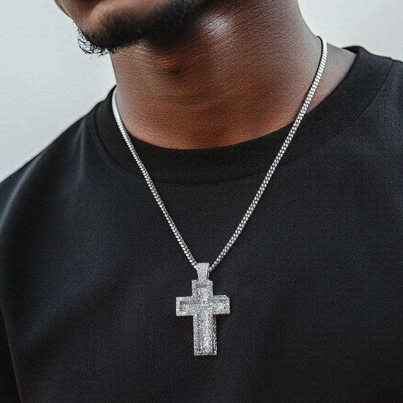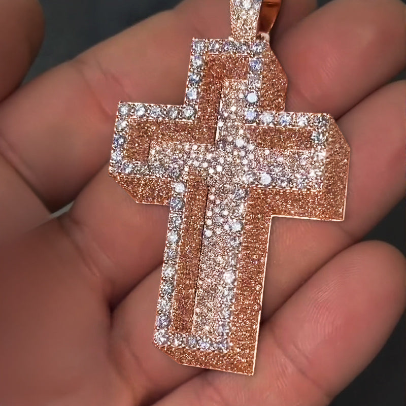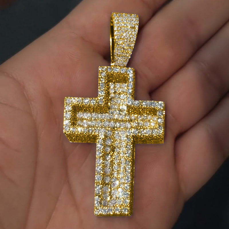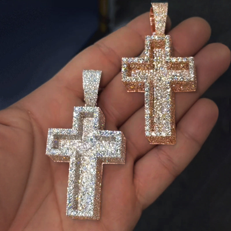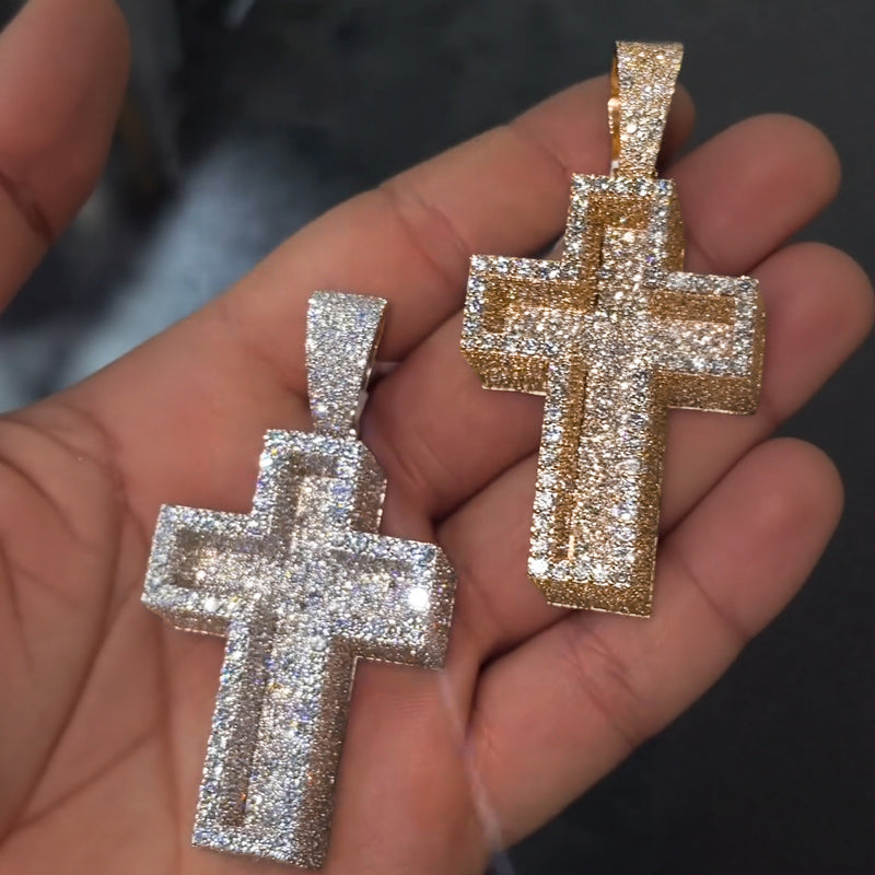 Moissanite Iced Out Paved Mosaic Cross Pendant