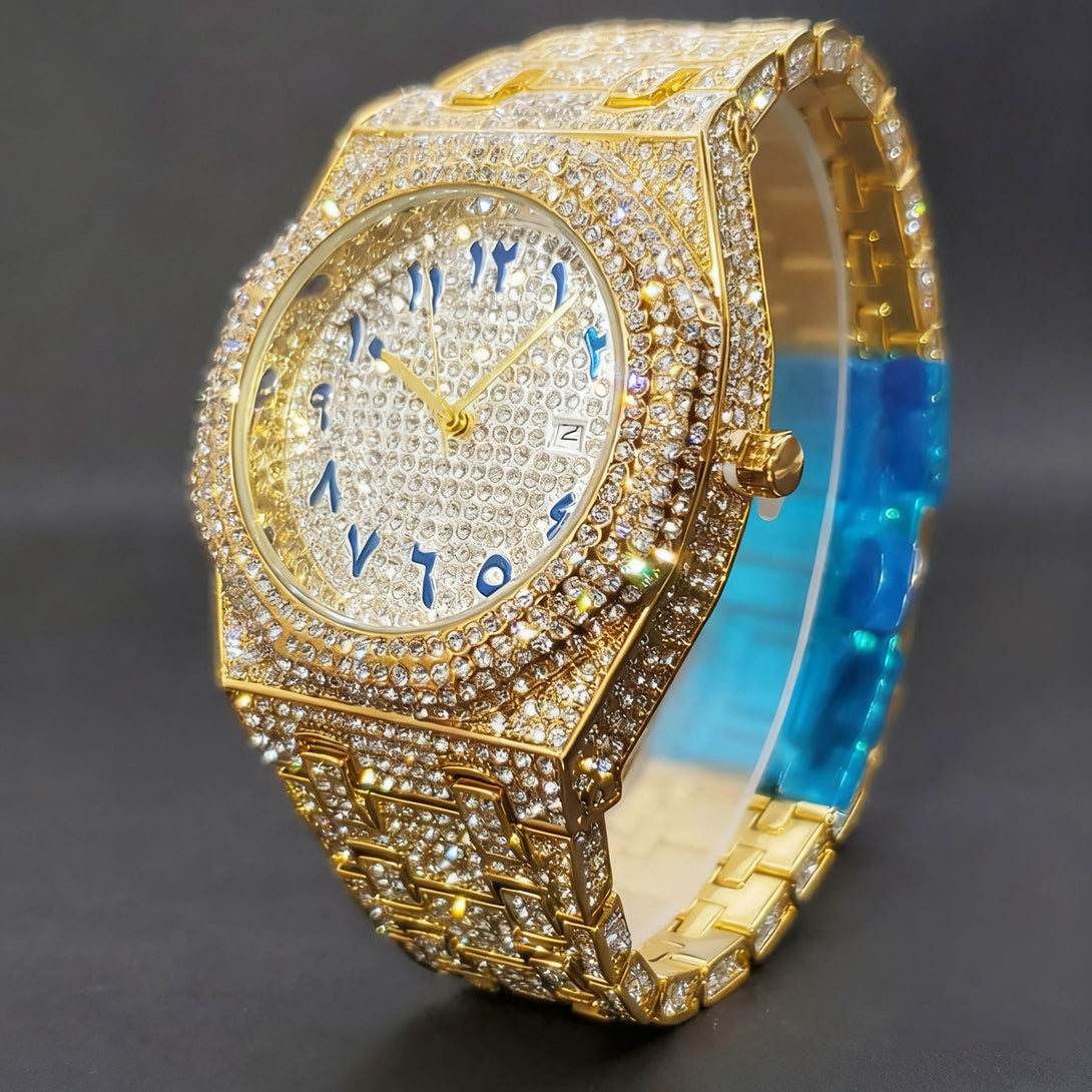 Crowned with elegance and built for supremacy, the Royale Arabic Iced Out Watch unites regal heritage with uncompromising luxury. Adorned with brilliant diamonds and adorned with sophisticated Arabic numerals, this timepiece reflects both cultural distinction and sovereign brilliance. For those who rule their world with style and authority, it stands as a symbol of elevated status—where tradition meets triumph, and every moment is mastered in diamond-lit prestige.