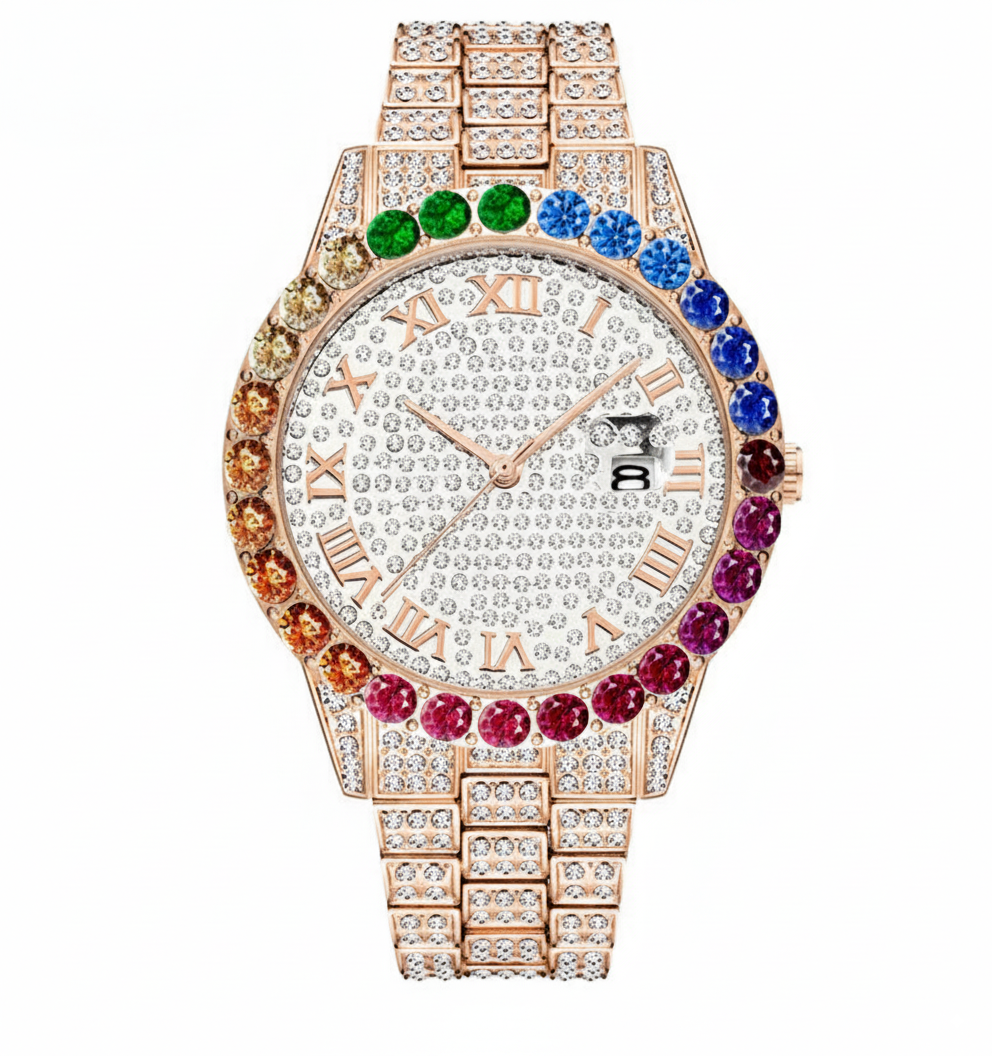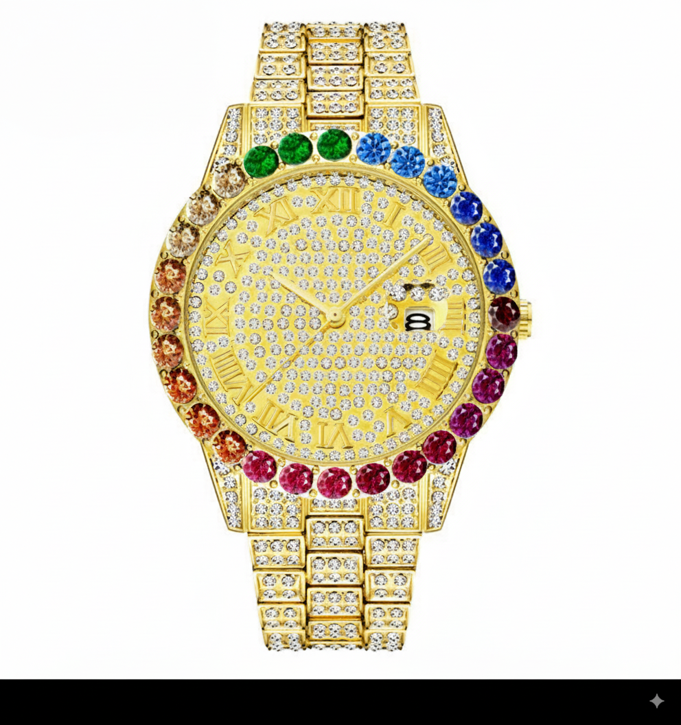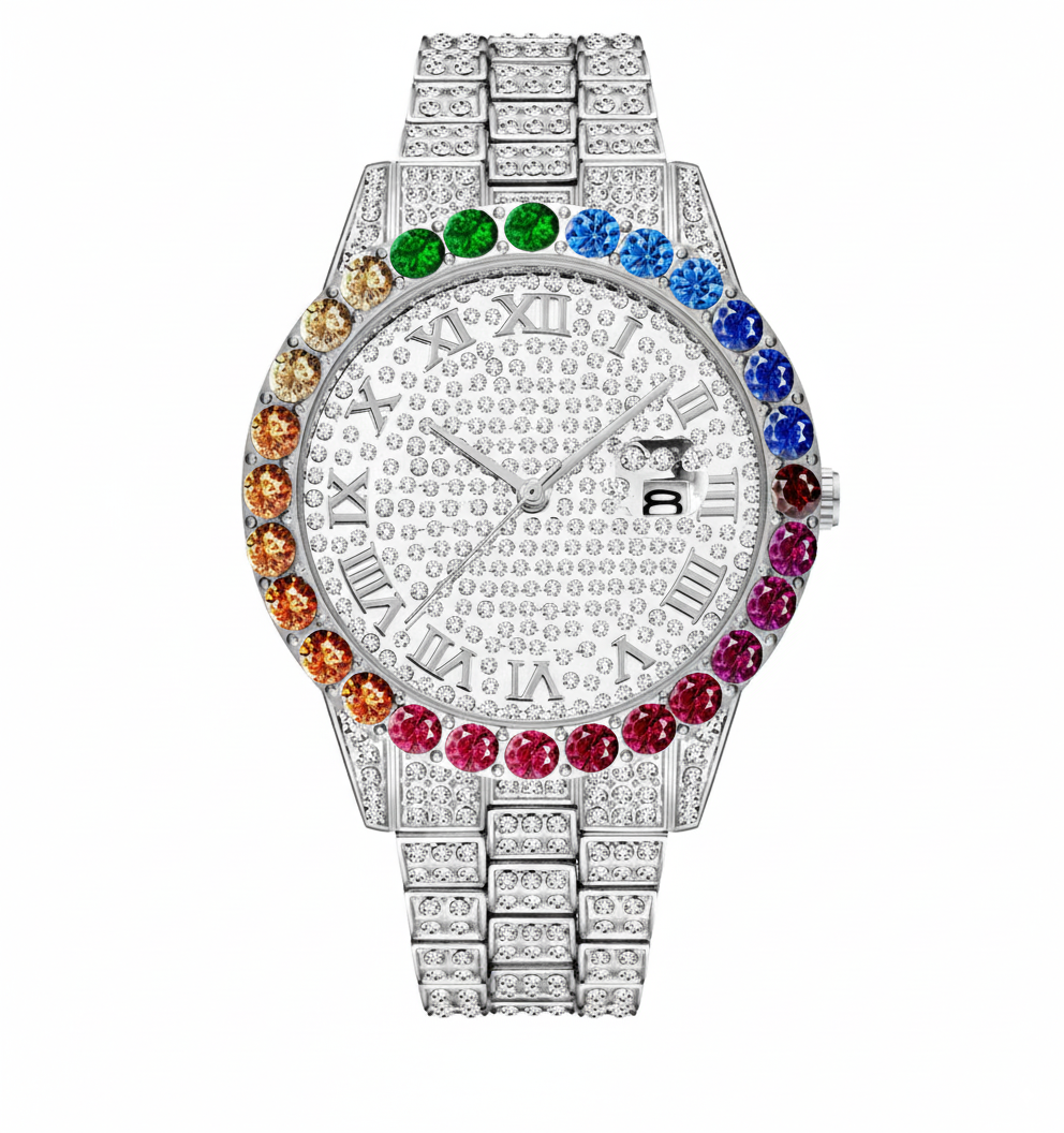 Bring the thunder and ice. The Storm watch is a blizzard of brilliance, loaded with pave diamonds crashing like a frozen hurricane on your wrist. Built for the bosses who weather any chaos and shine through the pressure. Sleek, savage, and seriously iced out. Command the elements. Own the storm.