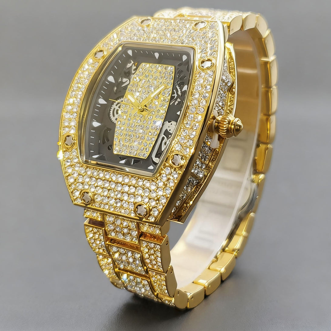 Shape the light. Redefine the rules. The Tonneau Iced Out Watch merges architectural distinction with uncompromising brilliance. Encased in a bold barrel-shaped design—reminiscent of vintage elegance and modern confidence—every curve and facet is lavished with pristine diamonds, capturing and reflecting light from every angle. For those who appreciate iconic form and fearless luxury, this timepiece is a wearable sculpture: a statement of style that’s both timeless and transcendent.