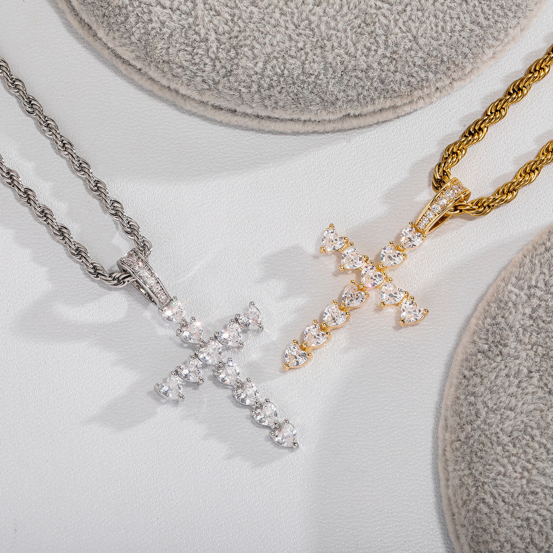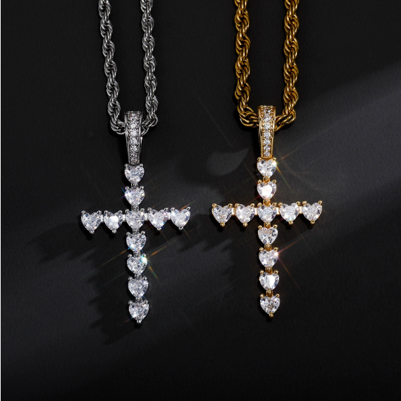 The Moissanite Heart Cross Pendant weaves two of the most timeless symbols—unconditional love (heart) and faithful devotion (cross)—into a single, breathtaking accessory. At its core, a brilliantly cut moissanite stone sparkles with fire and clarity that rivals fine diamonds, nestling within the delicate embrace of the heart-cross silhouette to amplify both sentiment and shine.