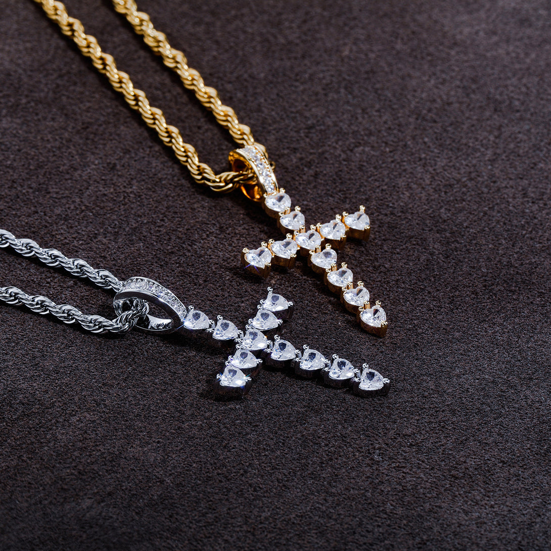 Moissanite Heart Cross Pendant