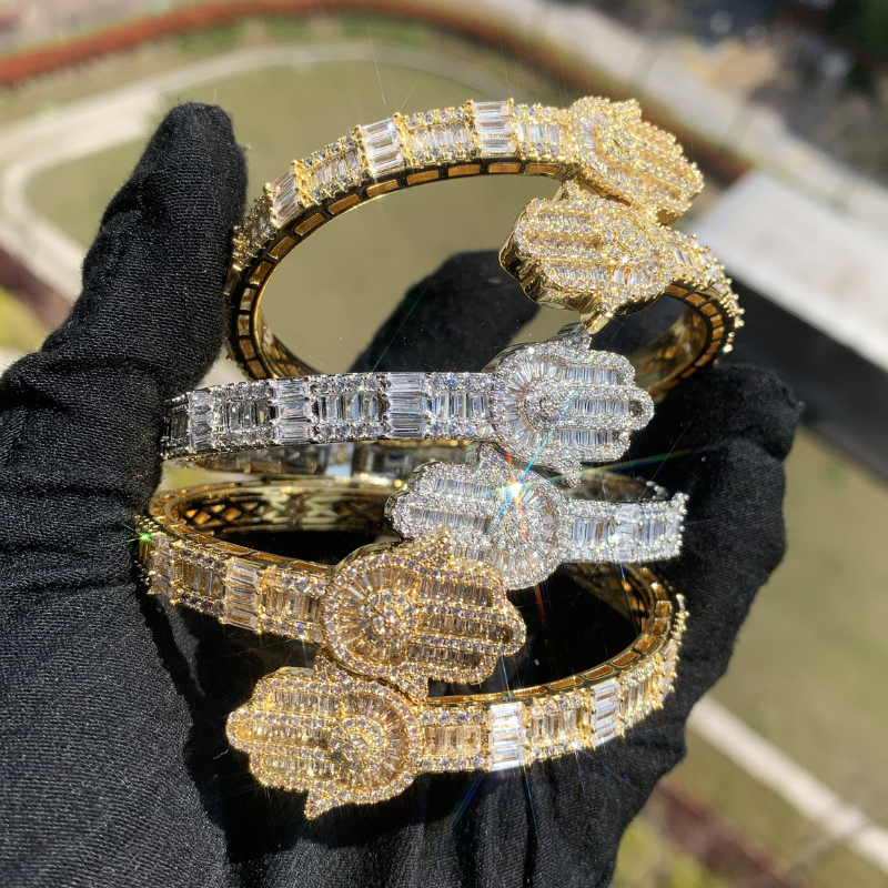 This moissanite hip hop palm bracelet exudes bold energy and standout style, crafted to capture attention with its radiant shine and unique design. Inspired by street culture and the power of self-expression, it brings a statement-making edge to any look, seamlessly blending brilliance with attitude. Perfect for those who want to showcase confidence and individuality, it transforms a classic accessory into a true symbol of hip-hop luxury.