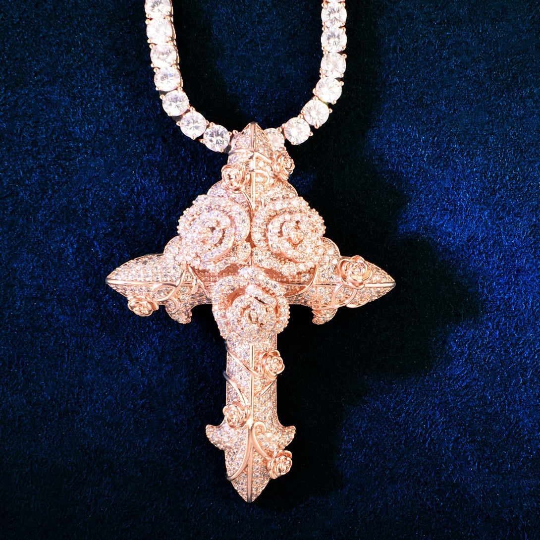 The Moissanite Rose Cross Pendant intertwines spiritual symbolism with the delicate beauty of a blooming rose, meticulously set with brilliant moissanite stones that radiate divine light. Each facet reflects a journey of grace and growth, blending reverence with nature’s elegance. Whether worn as an expression of belief, a tribute to resilience, or simply for its artistry, this piece offers a wearable prayer—a reminder that even the most sacred paths can bloom with brilliance.